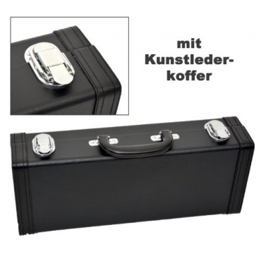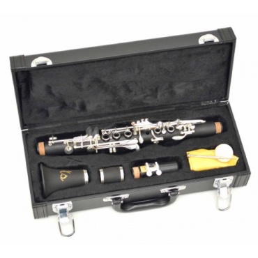 - Der Lieferumfang ist sehr gross und bietet alles, was man zum Musizieren braucht. Natürlich die Klarinette inklusive dem Mundstück mit Blatt und Blattschrauben, sowie das Fass, Mittelstück und Trichter. Eine Mundstück-Kappe und ein schwarzer Kunstleder-Koffer, welcher innen mit schwarzem Samt ausgekleidet ist gehören auch dazu.