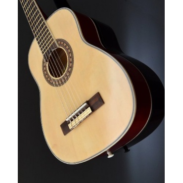 Wie eingangs erwähnt, lassen sich Konzertgitarren mit Nylon-Besaitung weicher spielen, als es villeicht mit einer Akustik-Gitarre möglich ist. Durch die Fertigung aus laminierten Tonhölzern ist eine schnelle und warme Ton-Ansprache gewährleistet. Damit man schnell mit dem Spielen loslegen kann, befinden sich neben der in schwarzem hochglanz lackierten Gitarre, noch eine gepolsterte Tasche, ein Stimmgerät, ein Gitarrenständer, ein Gitarrengurt, Ersatzsaiten und 3 Plektren im Set.