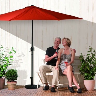 Dieser Sonnenschirm ist ideal für kleine Balkone geeignet, aber auch die innovative Form, halbrund und so kann man diesen Sonnenschirm praktisch an die Wand stellen. Das schafft Platz und mit einer sehr zuverlässigen Handkurbel lässt sich der Schirm einfach auf und zu machen. Das hochwertige Material des Bezug ist sehr langlebig und UV stabil. Alles am Schirm ist wetterfest und auch die Beschichtung der Oberfläche ist sehr überzeugend. Eine wirklich angenehme Farbe angepasst an den Schirmständer.