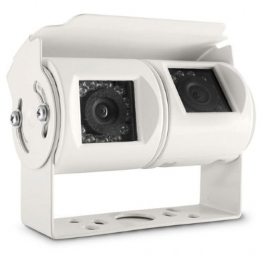 Die CM-DRFK1 Twin Rückfahrkamera ist eine besondere Kamera mit einem doppelten Kameramodul. Neben dem Erfassungswinkel von 120 Grad für den nahen Bereich verfügt diese Rückfahrkamera ebenfalls über einen Erfassungswinkel von 60 Grad für den fernen Bereich. Neben einem Standfuß besitzt das neuste Modell dieser Kamera auch über ein Edelstahl-Schutzdach. Die beiden integrierten Module dieser Twinkamera sind verstellbar.