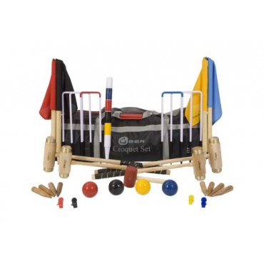 Das schöne Krocket-Sets bietet eine einzigartige Qualität und ist sehr gut verarbeitet. Das Junior Krocketset hat eine sehr gute Ausstattung mit englischen Eschenholzschlägern. Das Krocketset mit den hölzernen Bällen wird mit einem Holzhammer mit Gummi-Kopf zum sanften Befestigen der Tore geliefert, sowie mit vier Eckfahnen und acht Feldmarkern und vier farbigen Krocket-Clips.
