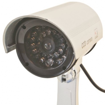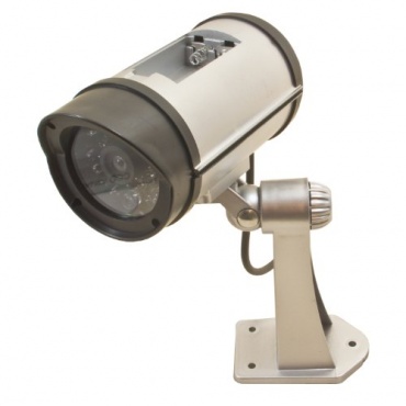Diese Überwachungskamera ist ein täuschend echter Dummy, diese Attrappe überzeugt durch ihre Optik, alle Details sind so echt ausgebildet, dass man wirklich glaubt diese Kamera überwacht einen. Über Batterien wird sogar ein optisches Signal erzeugt, dass dem Betrachter signalisiert, dass die Attrappe arbeitet. Damit werden Einbrecher abgeschreckt und das zu einem sehr erschwinglichen Preis. Die Kamera Attrappe ist einer sehr hochwertigen IP Kamera nachempfunden, die auch bei Nachtlichtverhältnissen ihren Dienst versieht.