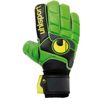 Die Uhlsport Torwarthandschuhe Fangmaschine Soft Graphit wurden speziell für den Einsatz auf Kunstrasen entwickelt. Der Torhüterhandschuh mit klassischem Schnitt sowie greller und auffälliger Farbgebung überzeugt mit einer guten Passform bei einem etwas erschwerten Einstieg. Mittels umlaufender Lasche lässt sich der Trainingshandschuh gut fixieren. Für einen höheren Fangkomfort bei harten Torschüssen verfügt der Handschuh über eine Laminierung mit einer Stärke von rund 3 Millimetern.