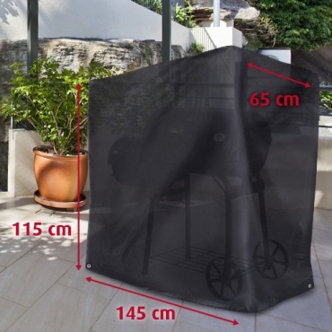 Mit dem hochwertigen Oxford Polyester 600D, das eine Stärke von 0,7 mm besitzt, ist der Grill vor jedem Wetter geschützt. Aber auch vor den UV Strahlen wird der Grill geschützt. Die Hülle ist so stabil, dass auch ein starker Sturm ihr nichts anhaben kann. Besonders gut geeignet ist die Hülle auch für Beistelltische. Mit einer Größe von 145 x 115 x 65 cm ist die Hülle für jeden Grill geeignet und für größere Tische.