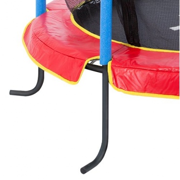 Besonders ist das qualitative Sicherheitnetz mit Reisverschluss, festgehalten von 6 gepolsterten Aluminiumstangen, welche für Stabilität sorgen und zugleich vor eventuellen Verletzungen bewahren. Speziell angefertigte Rebound-Elastikbänder und ein neu konzipiertes Federungssystem anstelle von Stahl-Federn ermöglichen den Kindern gesunde und knieschonende Sprünge. Desweiteren verhindert die gesamte umschließende Sprungfläche das Herausfallen oder Sprünge auf dem Rand.