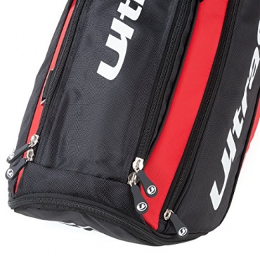 Die Thermoschlägertasche ist für die Aufbewahrung und den Transport von bis zu zehn Tennisschlägern konzipiert. Sie ist in modernem schwarz-rot designet und mit dem Ultrasport Schriftzug seitlich beschriftet. Ein Handriff zum Tragen oder zwei gepolsterte Schultergurte verprechen einen einfachen und komfortablen Transport. So kann die Tasche bequem als Rucksack getragen oder vorzugsweise auch auf dem Fahrrad transportiert werden.