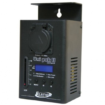 Der Elation Single Dimmer hat eine Größe von L:182 x W: 92 x H: 65 mm und ein Gewicht von 1,1kg. Ausgestattet ist der Dimmer mit einer optionalen Kabelfernbedienung UP-2F-und ist umschaltbar von Dimmer auf den Ein-Aus-Betrieb. Außerdem besitzt er einen Dimmfader für den manuellen Dimmeinsatz. Ein LED Display macht die schnelle Kanal und Parametereinstellung sichtbar.