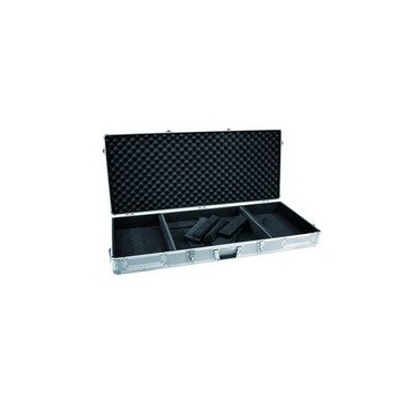 Sehr solide hergestellt aus Aluminium ist die Universal-Konsole. So beträgt die Wandstärke bei der Universal-Konsole 3 mm. Ausgestattet ist die Konsole mit drei Fächern, die allesamt gepolstert sind. Die Größe der einzelnen Fächer betragen 255 x 430 x 80 und 490 x 430 x 80 mm. Verschlossen wird die Universal-Konsole mit zwei Verschlüssen. Die Maximalbelastung beträgt 25 kg. Farblich ist die Universal-Konsole in einem Farbton aus Aluminium gehalten. Die Außenmaße betragen 110 x 47.5 x 16 cm. Das Gewicht liegt bei 8 kg.