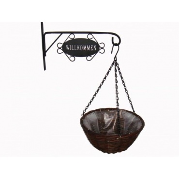 Diese Blumenampel wird zu einer wahren Besonderheit vor jedem Hauseingang. Sie besteht aus Stahl mit einem "Willkommens"-Schild und einen Weidenkorb, in den herrliche Blumen gepflanzt werden können. So wird dem Eingangsbereich ein attraktives Highlight verliehen, wodurch sich jeder Besucher sehr willkommen fühlen wird. Die Farbe schwarz/braun sieht sehr schön aus, vor allem wenn man hierzu farbenfrohe Blumen kombiniert. Ein solches Dekorationsmittel sollte an keinem Hauseingang fehlen.