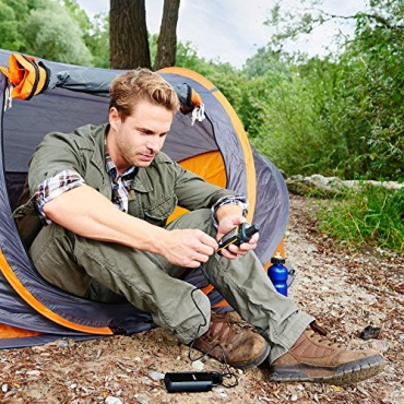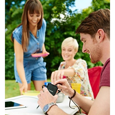 Hierbei handelt es sich um einen kompakten und kraftvollen Powerpack mit einem 6.000 mAh Lithium-Ionen-Akku. Durch die robuste Konstruktion aus ABS Kunststoff und mit einer Aluminium-Legierung wird eine Falltiefe von 2 Metern ermöglicht. Hinzu kommen staub- und wasserresistente Eigenschaften. Durch vier blaue LEDs wird der Lade- bzw. Eintladestatus angezeigt. Eine automatische Abschaltfunktion bewirkt, dass sich der Powerpack nach vier Sekunden ohne Benutzung abschaltet.