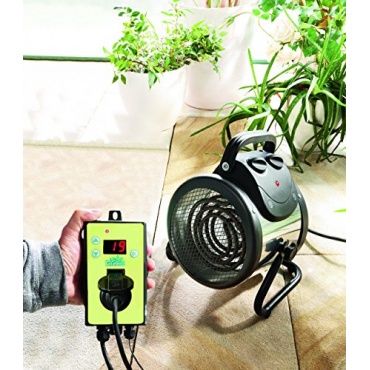 Die schwarze Vitavia Gewächshausheizung PALMA ist eine Elektro-Gebläseheizung mit einem digitalen Thermostat von -5°C bis + 85 Grad Celsius. Das Gewicht der Heziung beträgt 4,16 Kilogramm. Die leistungsstarke und energiesparende Heizung ist TÜV-zertifiziert und kann in Gewächshäusern und Feuchträumen eingesetzt werden.