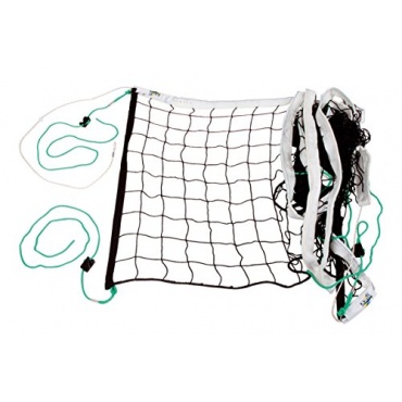 Das Kavelarseil oben ist etwa 11,7m lang. Das Netz hat eine 4 - Punkt - Aufhängung. Es gibt auf beiden Seiten jeweils zwei Spannschnüre und Schnellverschlüsse. Das obere Einfassband ist weiß und etwa 50mm breit. An der Unterseite des Netzes sind Einfassungen für Antennenbefestigungen eingearbeitet. Die Antennengarnitur ist nicht im Lieferumfang enthalten. Durch die hervorragende Qualität ist das Netz sowohl für den Schul- als auch für den Breitensport geeignet.