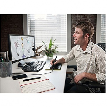Mit dem Grafik-Tablet von Wacom können kreative Köpfe nun ganz leicht und ohne viel Aufwand ihre Ideen umsetzen. Der Stift ist ergonomisch geformt und lässt sich angenehm über das Pad führen. Mit 1024 Druckbereichen ist hohe Qualität gesichert. Die Auflösung beträgt 2540 Punkte pro Zoll. So können Nutzer auch aufwendige Arbeiten leicht realisieren. Das Tablet ist Windows, wie auch Mac kompatibel.