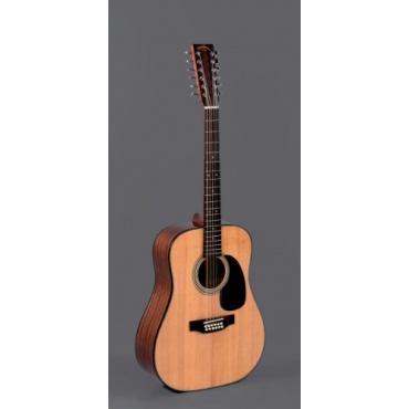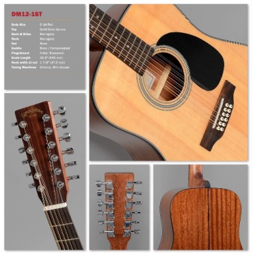 Die Sigma DM12-1ST ist eine für Fortgeschrittenere geeignete Westerngitarre ohne Tonabnehmer. Das zwölfseitige Instrument ist aus massiver Sitka Fichte angefertigt und die Bundstäbchen sowie Zargen bestehen aus Knochenmaterial. Die stählernen Saiten ermöglichen einen weichen, warmen Klang. Zum Abschlluss wurde die Gitarre Hochglanzpoliert