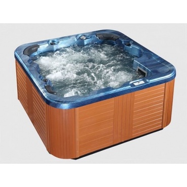 Dieser Wellness-Whirlpool glänzt mit seiner speziellen Form. So weist er 5 geformte Sitzplätze auf und einen Liegeplatz. Durch ein Unterwasserlicht und einer Heizung kann der Pool auch perfekt abends und nachts genutzt werden ohne dass einem kalt wird oder man seinen gegenüber nicht mehr sieht.