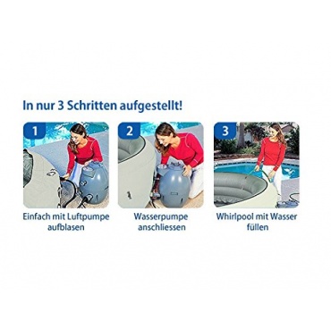 Whirlpool Miami von Caracella bietet viel Badevergnügen und Entspannung. Die Bedienung über die jeweiligen Funktionen lassen sich bequem vom Whirlpool aus steuern ohne eine große Mühe zu scheuen. Mit der mitgelieferten Pumpe ist der Aufbau des Whirlpools im handumdrehen aufgebaut.