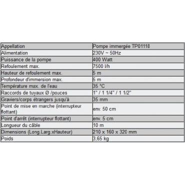 Die Wiltec Tauchpumpe max.35mm Körnung 7500l/h 400W zeichnet sich durch einzigartige technische Details aus. Ein Einphasen Asynchronmotor mit Überlastschutz, der auch gegen Überhitzung geschützt ist, dass sind die grundlegenden Bausteinen für Zuverlässigkeit und Langlebigkeit. Diese Pumpe schaltet sich sicherheitshalber selbst ab, wenn die Belastung zu hoch ausfällt. Das Wasser das durch die Pumpe fließt ist gleichzeitig als Kühlmittel gedacht und diese Konstruktion ist somit überdurchschnittlich innovativ.