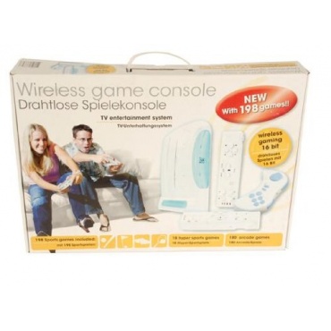 Mit dieser Konsole erlebt man viele Spiele, Abenteuer und Wettkämpfe für jedes Alter. Es handelt sich um insgesamt 198 Spiele, davon 18 Sportspiele und 180 Hyperspiele. So ist garantiert für jeden etwas passendes dabei. Beispiele sind Darts, Basketball, F1 Race, Shooting oder Adventure Robot, um nur einige zu nennen. Die Wireless-Controller und der Wireless-Joystick lassen jeden Spielzug zur Fitnessübung werden.