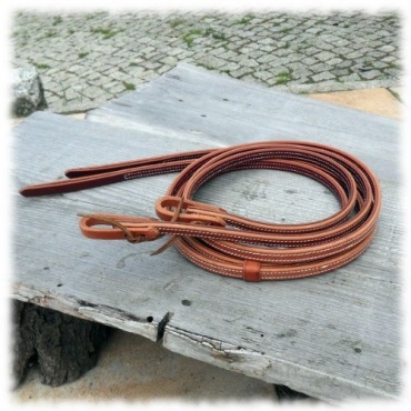 Die Westernzügel ProLine Reins von WI-Westernimports sind extra schwere Harness-Westernzügel. Das Produkt ist aus feinstem Herman Oak Leather gefertigt überzeugt durch seine robuste und langlebige Verarbeitungsqualität. Der schmale Lederzügel zum Westernreiten bietet dem Reiter variable Einstellungsmöglichkeiten, so dass die Zügellänge je nach Pferd oder Können des Reiters bequem angepasst werden kann. Die maximale Zügellänge beträgt rund 2,40 m inklusive der Schnallen.