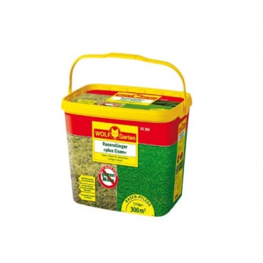 Der Wolf L-PM 300 Rasendünger Plus Eisen ist ein Spezialprodukt, das für sattgrünen Rasen ohne Moosbewuchs sorgt. Die 7,5 Kilogramm sind in einem wiederverschließbaren und wasserdichten Plastikbehälter verpackt. Die Menge reicht für 300