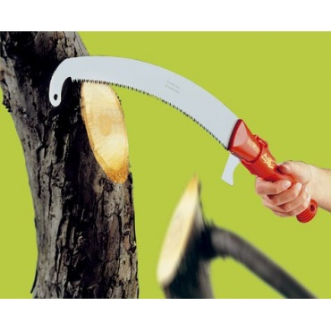 Durch ihr 39 cm langes Sägeblatt mit doppelt gehärteten Sägezähnen die aus hochwertigem Schwedenstahl sind, ist das kein Problem mehr. Das Sägeblatt ist gekrümmt für einen optimalen Schnittwinkel.Durch die hohe Sägeleistung mit Zug, ist es möglich sie auch als Handsäge zu benützen.