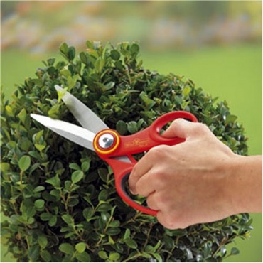 Die Vielzweckschere bietet sich dagegen ideal für den universellen Einsatz an. So können mit ihrer Hilfe nicht nur die verschiedensten Blumen, sondern auch Kräuter und dünne Zweige geschnitten werden. Ebenso ist die Vielzweckschere eine wertvolle Hilfe beim Basteln: ob Stoff, Verpackungsmaterialien, Pappe, Papier, Tapete und Seil, die Schere schneidet zuverlässig und ist einfach zu handhaben. Da sie ebenfalls einen integrierten Drahtschneider besitzt, können damit auch härtere Materialien, wie zum Beispiel Basteldraht, durchtrennt werden.