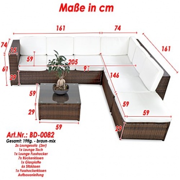 - Die braune XINRO 19tlg.Gartenlounge mit Polyrattangeflecht hat einen hohen Sitzkomfort.Die Garnitur ist durch weitere Loungemöbel jederzeit erweiterbar.