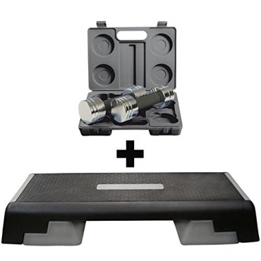 Im Lieferumfang ist neben dem Stepper ein Hantelset enthalten. Dieses besteht aus 2 x 0,5 kg Kurzhantelstangen, 8 x 0,25 kg Hantelscheiben und 4 x 0,5 kg Hantelscheiben. Sowohl die Hantelstangen als auch die Hantelscheiben sind aus Chrom. Das Gewicht der Hantel lässt sich somit individuell einstellen. Zum sicheren Halt sind die Griffflächen mit Schaumstoff überzogen. Der Aerobic Stepper ist das ideale Trainingsgerät für zuhause. Koordination, Kraft und Balance werden gleichermaßen trainiert.