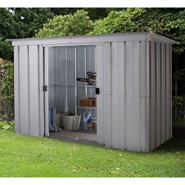Das Yardmaster Metallgerätehaus Sachsen 64 mit einer Grundfläche von 1,9 qm kann zur wetterfesten Aufbewahrung von Gartenmöbeln, Werkzeuge und Gartengeräten genutzt werden. Der Geräteschuppen lässt sich sehr einfach mit Hilfe der platzsparenden, da innenlaufend, Doppelschiebetür öffnen. Des Weiteren sind die 3 mm dicken Wände aus feuerverzinktem Stahl gefertigt und tragen eine Polymer-Beschichtung.
