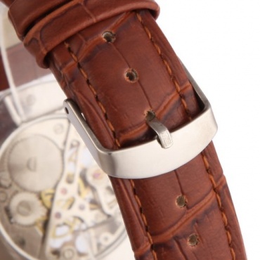 Die mechanische Damen Uhr mit dem edlen Lederarmband besticht durch ihre einzigartige Schönheit, denn bei diesem Modell handelt es sich um eine Skelettuhr. Der moderne Stil der Uhr überzeugt mit großer Wahrscheinlichkeit auch eine junge Trägerin, die recht bald die hohe Zuverlässigkeit des präzisen Uhrwerks erkennen und schätzen wird.