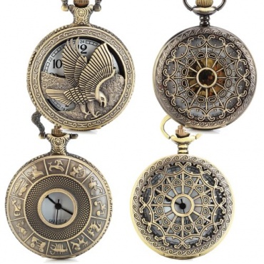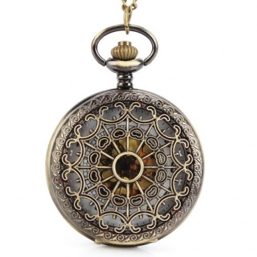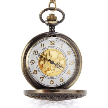 Die Taschenuhr von YESURPRISE sticht im Vergleich zu anderen Taschenuhren ziemlich heraus. Das Design ist sehr ungewöhnlich aber dennoch ansprechend. Diese Taschenuhr verfügt über eine komplette Bronze Optik. Der Deckel besteht aus einzelnen sehr filigranen Bronze Fragmenten. Das Ziffernblatt ist in Gold und weiß gehalten und symbolisiert den kolonial Stil. Die Rückseite der Taschenuhr ziert ein Greifvogel aus Gold. Diese Taschenuhr ist an einer langen Kette angebracht, die ebenfalls über eine Bronze Optik verfügt.