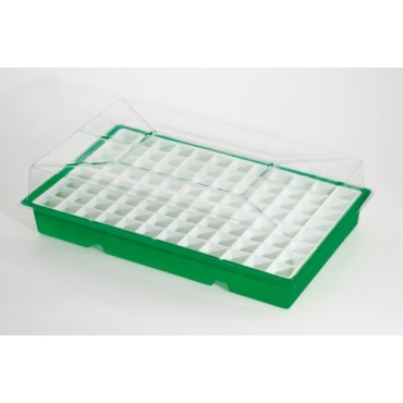 Mit einer Maße von 56 x 35 x 10 cm bietet das Zimmergewächshaus William ideale Aufzuchtbedingungen auf kleinstem Raum. Die grüne Anzuchtschale und die weiße Topfplatte überzeugen durch eine hohe Qualität. Für die Anzucht genügt es, Samen auf die Substratoberfläche zu streuen und mit etwas zu bedecken. Das Gewächshaus sorgt für eine gleich bleibende Temperatur und einen intensiven Lichteinfall. Die Topfplatte enthält insgesamt 96 Kunststofftöpfen, die 4 cm quadratisch sind.