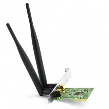 Die WLAN-Karte TL-WN881ND von TP-Link wurde für den Einsatz in Desktop-PCs entwickelt. Sie benötigt einen freien PCIe x1 Steckplatz und unterstützt den 2.0-Standard. Die zwei Antennen befinden sich nach dem Einbau hinter dem Computergehäuse und stellen drahtlose Verbindung zum entsprechenden Netzwerk her. Mit der TL-WN881ND sind Übertragungsgeschwindigkeiten von bis zu 300 Megabit pro Sekunde möglich, wodurch sich auch datenintensive Anwendung - beispielsweise Videostreaming - problemlos nutzen lassen. Für die sichere Übertragung werden sowohl WEP, als auch WPA und WPA2-Standards unterstützt.